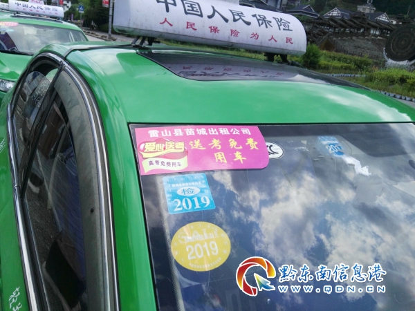 該縣30輛出租車“愛心助高考”志愿者們滿懷笑容地從雷山縣交通運(yùn)管部門領(lǐng)導(dǎo)手中接過“愛心助高考,送考免費(fèi)用車”的牌子張貼各自顯眼的車頭。同時(shí)堅(jiān)定承諾:“我們一定會(huì)盡自己所能把考生及考生家長、監(jiān)考老師安全、準(zhǔn)時(shí)地送到考場,預(yù)祝廣大考生考出水平,考出佳績,到大學(xué)深造,成為祖國專業(yè)人才。”
