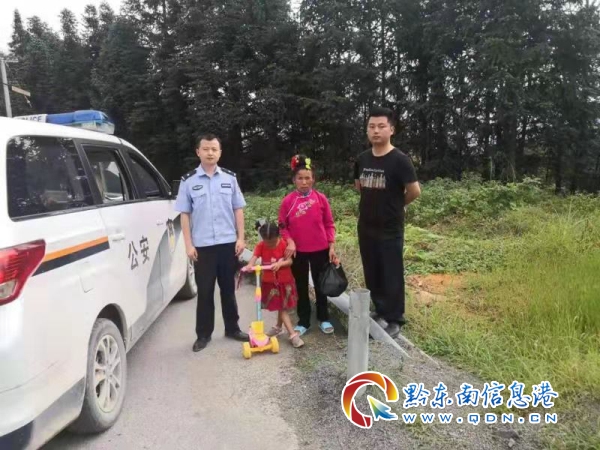 當天下午3時,雷山縣大塘派出所接到一名婦女求助電話稱:在雷丹公路97路段,有一名六歲的女孩和家人走失,尋求幫助。接警后,民警楊鴻迅速組織警力立即趕往現場。在現場見到丟失孩子正在著急的婦女,民警一邊耐心安慰,一邊向其詢問走失女孩體貌特征。得知女孩已走失近一個小時,了解初步情況后,民警迅速制定方案,以案發地為原點往直徑5公里內進行尋找路線,用時越少,女孩就少一分危險,之后立即調動了全所警力,有的往新塘、新聯村等方向尋找,有的往排嶺坳路段方向尋找。群眾有難我們定當負重前行,民警、輔警們不放過任何一個細節,沿途細致觀察馬路延邊、路過車輛等信息,最終各個方向尋找近一個小時左右,在往獨南村路段發現一女孩獨自正在用滑板車一路玩一路走,民警立即前往確認,經家長確認正是這名女孩,女孩母親看到女兒安然無恙時,喜極而泣,并再三向民警表示感謝。