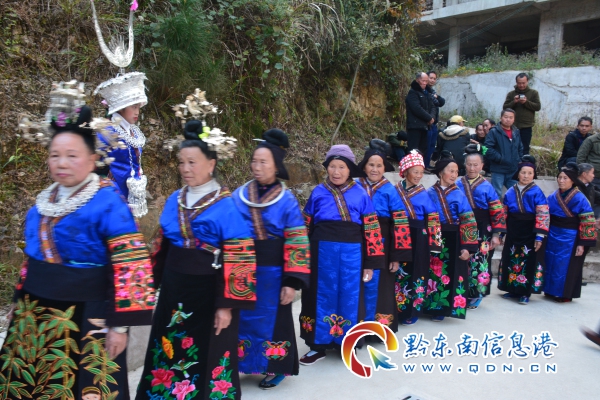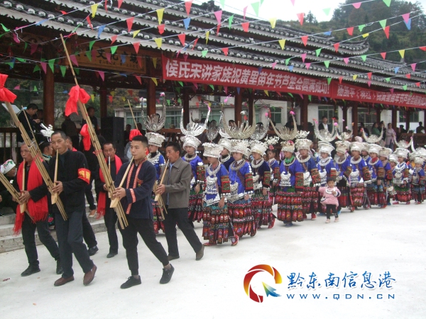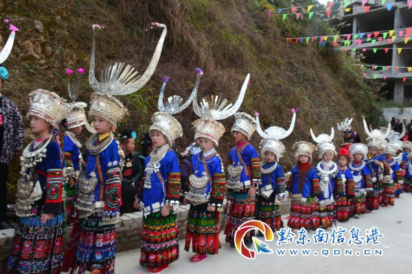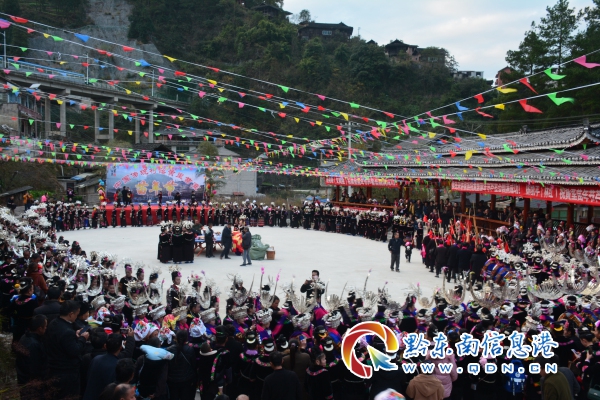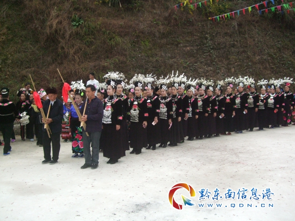 筆者在蘆笙場(chǎng)上采訪看到,參加蘆笙盛會(huì)的苗家兒女,個(gè)個(gè)頭戴銀冠,發(fā)髻插銀梳,耳配銀耳環(huán),頸戴銀項(xiàng)圈,腰捆銀圍腰鏈,下身著苗家五節(jié)群,腳穿苗家繡花鞋,一身華麗裝扮,展示著苗家精美的服飾文化。在歡跳蘆笙場(chǎng)上,分為老年方陣、中青年方陣、少年兒童方陣三個(gè)行列。在歡跳蘆笙行列中,頭戴銀冠并插銀角在前,只戴銀冠沒(méi)有銀角的在后,各色隊(duì)伍中,皆是高者在前,矮者在后,層次分明。圍著蘆笙轉(zhuǎn)圈,跳著蘆笙聲的節(jié)拍,跳起原生態(tài)的蘆笙舞蹈。蘆笙場(chǎng)上用的“千家糯米酒”,都用牛角盛滿(mǎn)酒敬親人,稱(chēng)是敬“牛角酒”。每天夜晚還舉行文藝晚會(huì)、撥河賽等活動(dòng)。在一周的苗年節(jié)黃里苗寨都沿浸在歡騰的海洋里,真是首首飛歌迎客人,曲曲酒送嘉賓,為苗年佳節(jié)增添了濃濃的異彩。(張希才 攝影報(bào)道)
