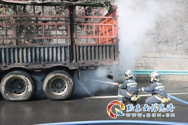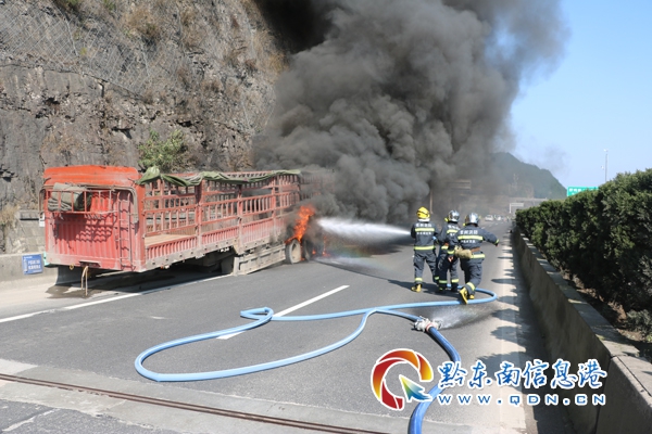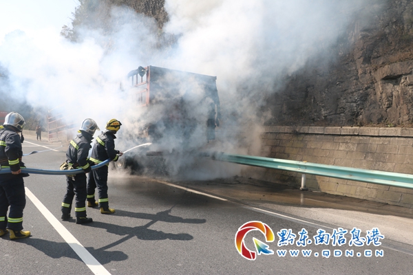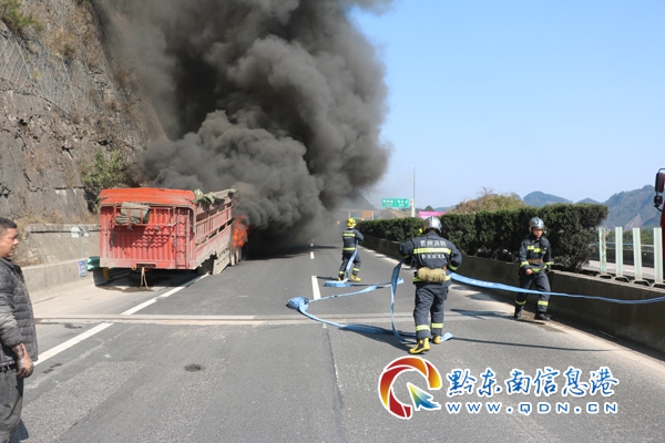 本網訊 3月3日14時,麻江縣消防大隊接到報警:位于凱里往麻江高速路段有一輛貨車在行駛途中起火燃燒,接警后,大隊立即出動趕赴現場處置。