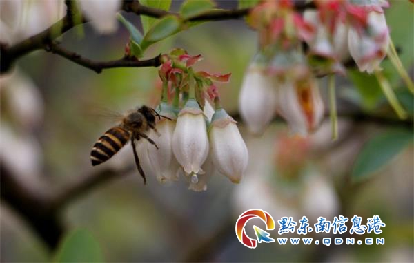 本網(wǎng)訊 陽春三月,地處麻江縣龍山鎮(zhèn)的藍(lán)夢谷,藍(lán)莓進(jìn)入花開季節(jié),16652畝藍(lán)莓花競相開放,滿園花香兆豐年!
