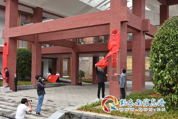 本網訊 4月20日上午,麻江縣舉行麻江縣委黨校、麻江縣行政學校新校區揭牌儀式,麻江縣委書記王鎮義、黔東南州委黨校副校長廖朝圣等領導為縣委黨校(行政學校)揭牌。