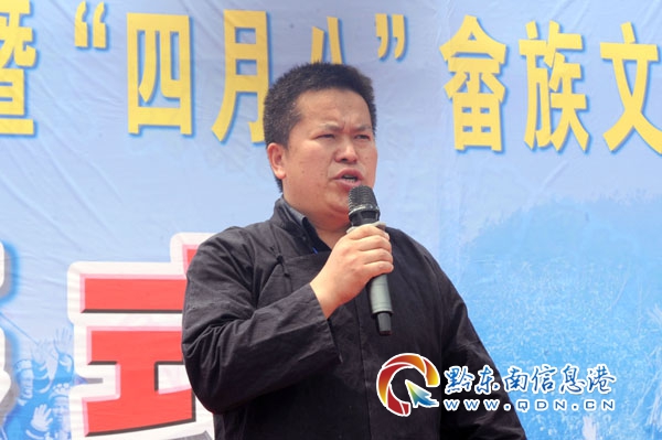 黔東南州文體廣電旅游局黨組書記范鐘聲宣布2019年隆昌“四月八”畬族文化節開幕