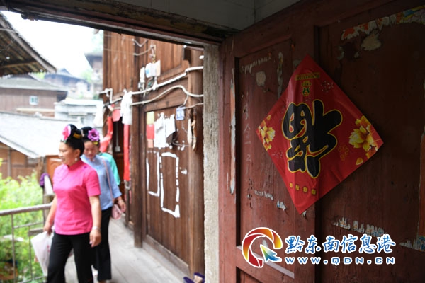 朱佳莉(前)從村民家中收購靈活計件計酬的繡片后離開