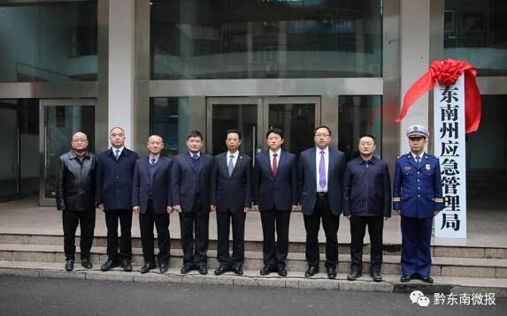 1月31日,黔東南州應急管理局掛牌成立,州委常委、州政府常務副州長張定超,州政府副州長、州公安局局長楊秀澗出席揭牌儀式。