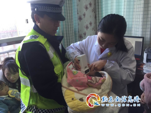 2019年2月6日大年初二上午,黔東南州交警支隊高速一大隊一中隊民警在巡邏途中,接到一名婦女的求助,說自己剛剛出生6天的孩子,因為病重需要趕緊送醫(yī),卻被堵在了緩行的車流當中。了解情況后,民警迅速讓其乘坐的出租車駕駛員駕車跟隨執(zhí)勤警車,前往就近的麻江縣人民醫(yī)院。在送醫(yī)途中民警通過喊話器喊話,提醒同向行駛的車輛為警車和出租車讓出一條生命通道,并通過對講機與正在麻江收費站執(zhí)勤的民警,協(xié)調(diào)收費站打開應急通道,便于警車與出租車快速出站,為救治嬰兒爭取寶貴的時間。