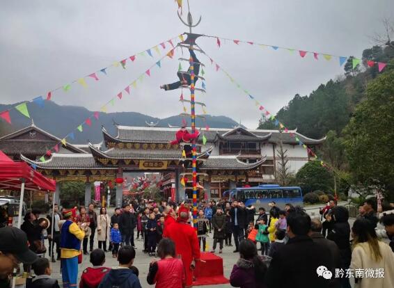(一)迎新文旅活動精彩紛呈。豐富多彩的假日文旅活動營造出濃濃的節(jié)日氛圍,加深了廣大游客的假日體驗(yàn),春節(jié)期間,我州充分發(fā)揮民族風(fēng)情資源優(yōu)勢,全州各縣市積極組織開展豐富多彩的的民風(fēng)民俗節(jié)慶活動和文化旅游活動,弘揚(yáng)傳統(tǒng)民族文化,迎接豬年新春。凱里市、鎮(zhèn)遠(yuǎn)縣組織了“猜燈謎”、登山比賽、花燈比賽、龍燈比賽等迎新春活動;丹寨萬達(dá)小鎮(zhèn)有民族絕技秀、民族盛裝巡游、客迎八方(攔門酒)活動;西江千戶苗寨主要活動較多,有祈福儀式、新年打花臉、原生態(tài)歌舞表演,情歌對唱、木葉吹奏、蘆笙表演、古歌展示、斗鳥、刺繡技藝展示及講解、蠟染技藝展示、打糍粑、苗族服飾展示與講解、苗族非遺苗族醫(yī)藥文化展示與講解等。黎平縣、劍河縣、臺江縣、岑鞏縣、錦屏縣、鎮(zhèn)遠(yuǎn)縣、麻江縣、黃平縣等都分別舉辦了不同的迎“豬年”新春活動。全州新春喜氣漫天,活動精彩紛呈、民族風(fēng)情濃郁,展示了我州多彩的民族文化,讓省內(nèi)外游客及境外游客深深體會了黔東南多彩的民族文化、民族風(fēng)情,感受豐富給力的“節(jié)日大餐”,展示了黔東南州打造國內(nèi)外知名民族文化旅游目的地得天獨(dú)厚的條件,通過各景區(qū)舉辦的各類活動,讓游客在春節(jié)假日期間有看、有玩、有參與,同時(shí)吸引了新華社、人民網(wǎng)、貴州多彩網(wǎng)、今貴州、貴州都市報(bào)等各大媒體報(bào)道。