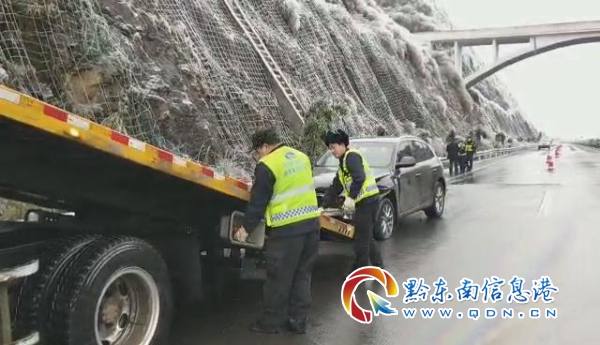 2月18日中午,黔東南州公安局交警支隊高速三大隊接110指揮中心轉警稱:思劍高速鎮遠轄區上行線,大地往羊場方向95公里處,有一小車撞護欄事故,車輛為一湘籍棕色奧迪,無人員受傷,有路產損失,請出警處置。