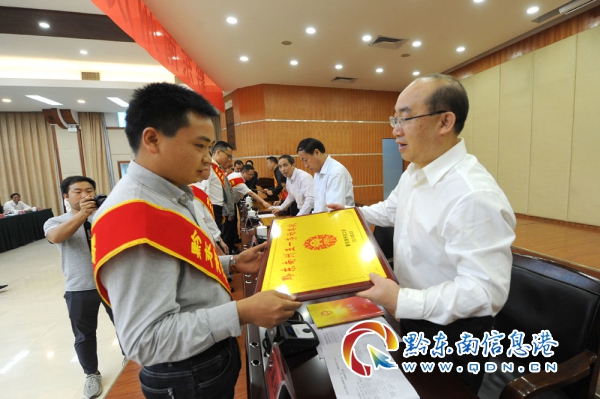 大會授予貴州建天下建筑工程有限公司等28個單位為“黔東南州五一勞動獎狀”; 陳忠平等61名個人為“黔東南 州五一勞動獎章”;凱里市公共交通總公司2路公交線等30個班組(車間、科室)為“黔東南州工人先鋒號”,凱里市昌華銀絲工藝工作室負責人吳昌華等19人為黔東南工匠;麻江供電局安全生產部副主任李珂等15人為黔東南金牌工人。表彰大會上,主席臺就坐的領導分別為獲獎單位及先進個人頒獎。