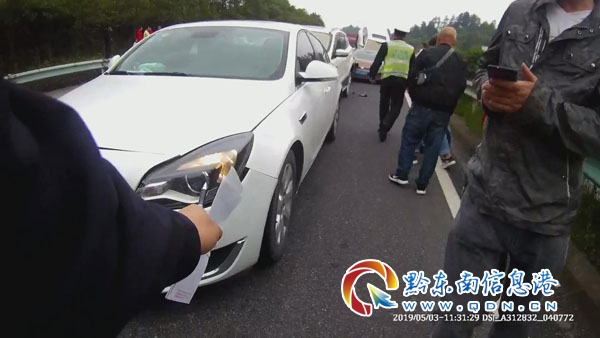 本網訊 2019年5月3日中午11時30分左右,黔東南州交警支隊高速一大隊轄區內的滬昆高速麻江境內1730KM處(小地名:兩路口路段),因五一小長假期間出行車輛量較大,且車輛之間跟車距離較近,在前車采取緊急制動后,導致后方多車追尾。正在不遠處執勤的一中隊民警步行跑步前往事故發生地點處置。