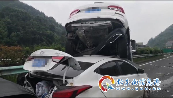 民警到達現場后,發現事故現場共有12輛車連續發生了碰撞,在事故車輛中,還有一輛白色轎車被后車直接從車底頂起。當時正處于五一長假期間,滬昆高速上車流量非常大,稍不注意很有可能發生意想不到的后果。為了快速恢復現場交通秩序,防止二次事故的發生且造成高速公路大面積堵塞,現場民警快速處置現場,在拍照取證后,讓車輛受損不嚴重的事故車駕駛員自行駕駛車輛至高速交警一大隊二中隊辦公地點進行處理,在事故中受損嚴重無法挪動的車輛,民警先組織人員將其推到應急車道內,等待高速應急部門的救援。所幸在此次事故中無人員受傷, 目前,此案件正在進一步的處理當中。