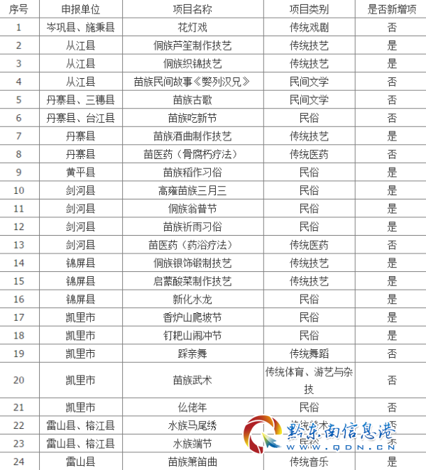 6月4日,貴州省人民政府公布了第五批省級非物質文化遺產代表性項目名錄,全省共計224項315處,其中新增項共152項174處,擴展項72項141處。黔東南州入選52項64處,入選總數占全省23%,位列全省前茅,其中新增項26項27處,占全省新增項的17%,擴展項26項37處,占全省擴展項的36%。截至目前,黔東南州共有省級非遺代表性項目218項306個保護點,位列全省第一。
