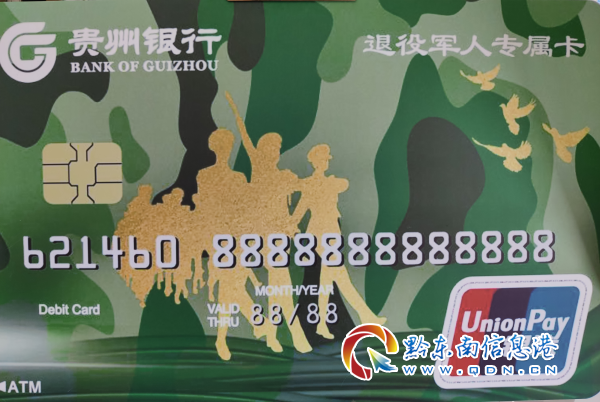 即日起,優撫對象可憑軍官證、士兵證、退役證、優待證以及身份證等有效證件,到貴州銀行銀行黔東南分行營業網點申請辦理退役軍人專屬銀行卡,銀行將在營業網點開通綠色通道,提供優先、優質、優惠的金融服務。