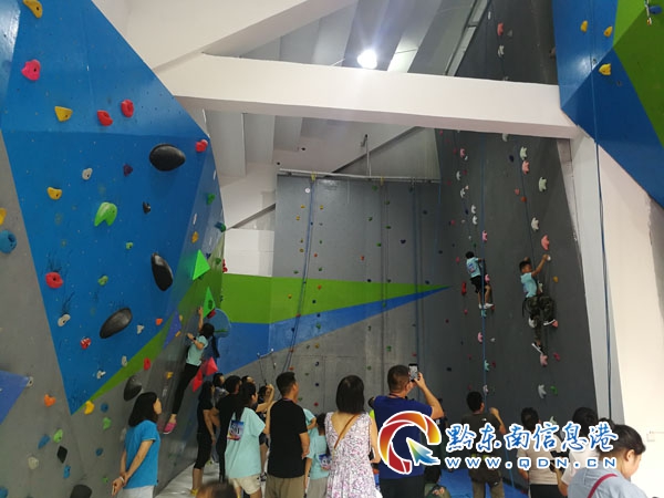 本網訊 7月14日下午,2019年黔東南州青少年攀巖錦標賽在凱里市民族體育場攀巖訓練館火熱開賽。本次賽事由州文體廣電旅游局、州教育局主辦,市文體廣電旅游局、州體育總會登山協會承辦。來自全州各縣市的36名6至14歲的攀巖小將們在此展開了為期1天的比賽。項目設男女難度賽、速度賽、攀石賽。