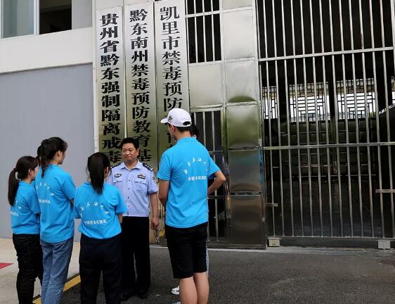 當(dāng)天下午,志愿者一行來到黔東強制隔離戒毒所,戒毒所宣傳科長李修明帶領(lǐng)大家參觀了戒毒學(xué)員的生活勞動場所、禁毒教育基地,組織觀看禁毒宣傳片《與神共舞》。李科長在與大學(xué)生志愿者的交流中,介紹了吸毒人員各方面的結(jié)構(gòu)數(shù)據(jù)及典型案例。對于年輕人如何預(yù)防陷入毒坑,李科長說個人思想修養(yǎng)很重要,精神空虛是染毒的重要內(nèi)因,做一個有生活責(zé)任和社會責(zé)任的人,有自己的目標(biāo)并為之努力,就不會沾染毒品。通過深入禁毒工作一線和實地目睹真實涉毒人員和事例,讓志愿者更加直觀和深刻體會毒魔的恐怖,堅定拒毒防毒意識。