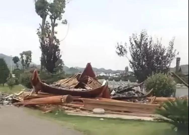黃平舊州也出現異常情況:鋼架廣告牌嚴重變形,搖搖欲墜;工地施工架倒塌,堵塞交通;路邊亭子垮塌……