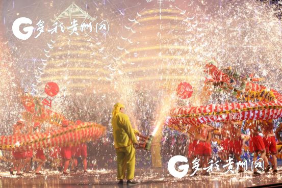 2018春晚分會場,黎平肇興侗寨,被稱為“勇敢者的狂歡”的省級非遺舞龍噓花表演,氣象萬千。黎平縣委宣傳部供圖