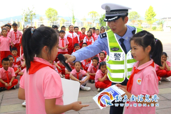 宣傳活動中,民警從小學生的年齡特點出發,圍繞“知危險、會避險”主題,從全面提升小學生交通安全防護意識和文明守法意識,遠離交通事故的傷害,共同呵護小學生的健康成長入手,重點介紹學生走路、騎車、乘車等注意事項,教育學生在步行、騎車和乘車時應嚴格遵守道路交通標志,注意觀察路面情況,做到“一看、二慢、三通過”。民警還通過有獎問答的方式,向學生講解交通標志的意義和特點,還針對上下學時段,學生闖紅燈、逆向行駛、爭道搶行、亂穿馬路、追逐打鬧等不安全行為進行教育,叮囑學生一定要牢記交通安全,做一名懂安全、識安全、踐行安全理念的交通參與者。