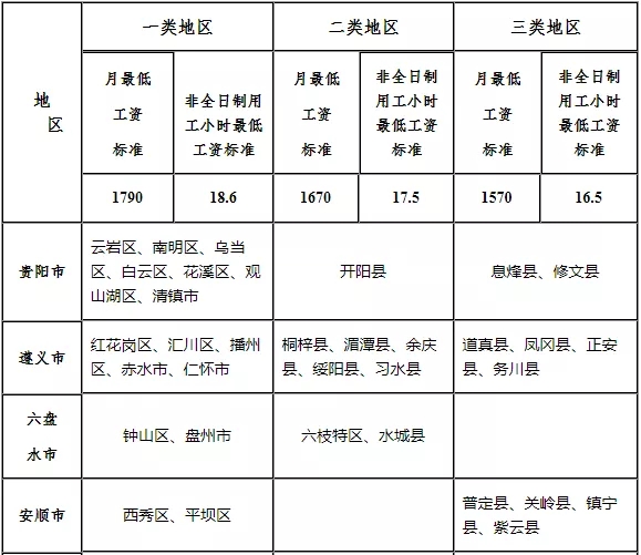貴州省最低工資標(biāo)準(zhǔn)區(qū)域劃分