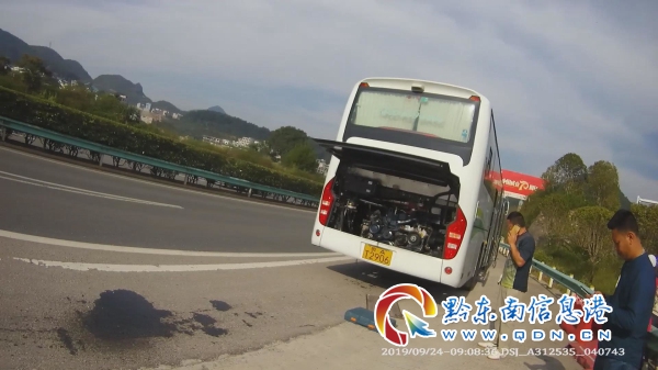 民警迅速在大巴車后方做好安全防護(hù),并找到駕駛員詢問具體情況。經(jīng)過詢問后得知,該大巴車為旅游包車,車上共有27名來自廣東的游客,當(dāng)天早上8點半從西江千戶苗寨出發(fā),準(zhǔn)備前往此行的最后一個景點,下司古鎮(zhèn)游玩結(jié)束后,12點半在凱里南高鐵站乘坐高鐵離開。誰知車輛行駛至凱里東收費站附近時,發(fā)動機機油濾清器破損,導(dǎo)致發(fā)動機漏油,無法繼續(xù)行駛,駕駛員只能將車輛靠邊如果在高速公路上耽誤時間過長,不僅會影響到游客們的行程,還可能導(dǎo)致趕不上返程的高鐵。