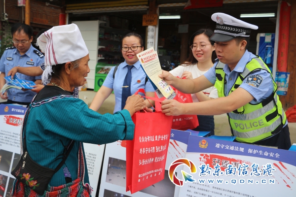 ----為了千萬個(gè)幸福家庭的平安出行,他們除了當(dāng)“警營(yíng)記者”,還甘當(dāng)“宣傳員”,他們紛紛開展“七進(jìn)”宣傳,將法治陽光撒向苗鄉(xiāng)侗寨。