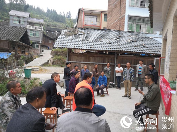 駐村干部向群眾宣講脫貧攻堅政策。黔東南州委宣傳部供圖