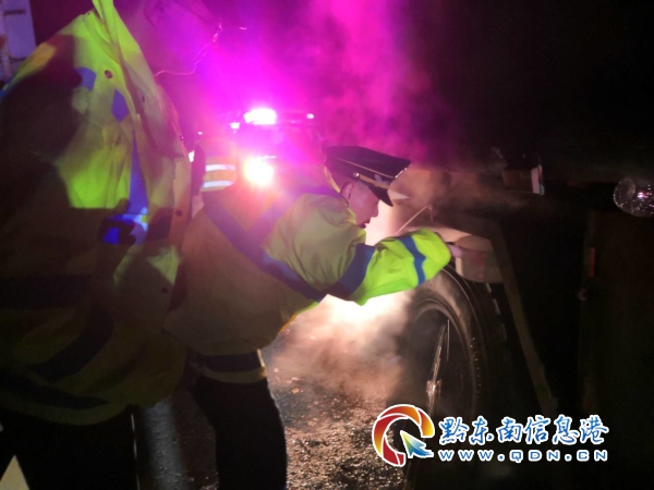 該車(chē)是從凱里西收費(fèi)站進(jìn)入高速公路,16時(shí)40分行駛至該地點(diǎn)時(shí)因車(chē)輛軸承斷裂不能行駛,停靠于此并報(bào)警等待救援。17時(shí)20分在救援的過(guò)程中因該車(chē)輛的后右輪軸承斷裂在拖車(chē)的過(guò)程中冒出大量濃煙,情況十分危急,現(xiàn)場(chǎng)路政員迅速?gòu)膱?zhí)法車(chē)輛里拿出滅火器、礦泉水對(duì)車(chē)輛輪胎進(jìn)行降溫,降溫后行駛不到150米左右依然會(huì)冒出濃煙,滅火器和車(chē)上的礦泉水已經(jīng)用完了,如再繼續(xù)行駛車(chē)輛極有可能起火,后果不堪設(shè)想,為了能及時(shí)的排出險(xiǎn)情,17時(shí)30分經(jīng)路政人員與現(xiàn)場(chǎng)交警、應(yīng)急部門(mén)現(xiàn)場(chǎng)商議決定,采取邊走邊對(duì)車(chē)輛輪胎進(jìn)行降溫的方式,將車(chē)輛拖出凱里東收費(fèi)站。21時(shí)20分,在各部門(mén)的共同努力下,經(jīng)過(guò)近四個(gè)小時(shí)的施救,故障車(chē)輛安全拖離,險(xiǎn)情終于解除。