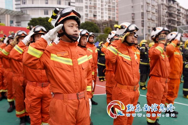 州政府副州長、州公安局局長楊秀澗代表州委、州政府對州消防救援支隊順利掛牌表示熱烈的祝賀。他指出,改革轉隸以來,全州消防救援隊伍能夠嚴格按照總隊、州委、州政府工作部署,對標“兩嚴兩準”紀律部隊建設標準和應急救援“主力軍、國家隊”職能定位,經受住了劍河“10·6”火災、新中國成立70周年消防安保等一系列重大災害處置和重要安保任務的實踐考驗,最大限度保護了人民群眾生命財產安全,工作業績值得充分肯定。他要求,全州消防救援隊伍要以此次掛牌為契機,一要提升政治站位。始終堅持從增強“四個意識”、堅定“四個自信”、做到“兩個維護”的政治高度,推進應急救援管理體系和能力現代化建設工作。二要堅持底線思維。深入開展安全生產集中整治和冬春火災防控工作,高標準做好“兩節”、“兩會”的消防安保工作,確保萬無一失。三要打造過硬隊伍。始終堅持紀律部隊建設標準,落實“五個不動搖”建隊要求,隨時做好搶大險、救大災的應急準備,確保關鍵時刻“拉得出、沖得上、打得贏”。