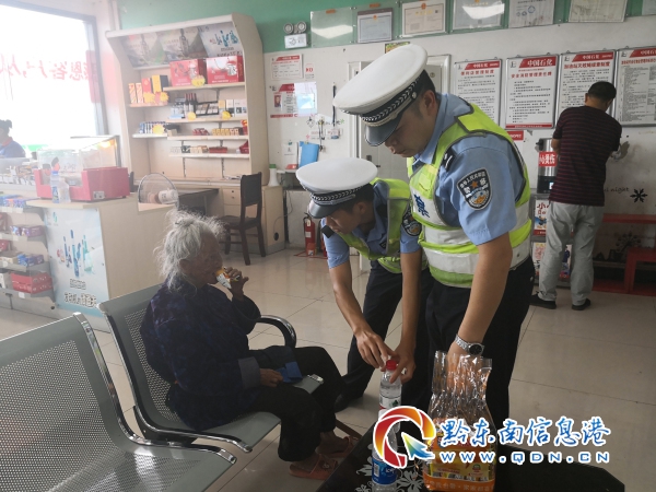 民警購買食物和水給老人充饑解渴