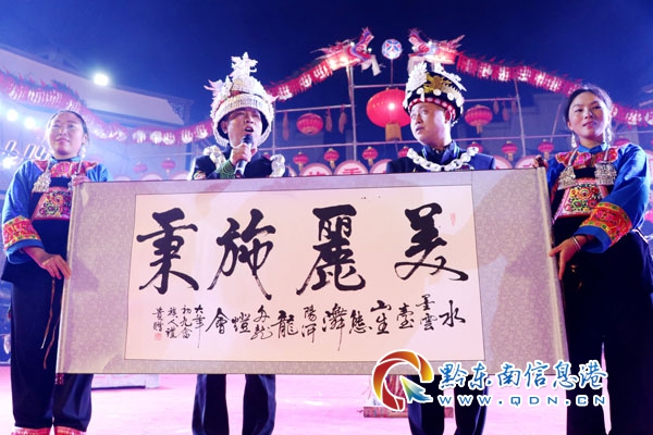 出燈之前,要舉辦“祭龍”儀式——祭師走進祭式臺,念咒語,灑敬水,祈禱新的一年風調雨順、國泰民安。隨后,施秉龍舟龍燈協會會長歐光輝宣布龍燈會正式開始,鳴放禮炮并進行舞龍表演。苗歌、板凳舞、苗族踩鼓舞、畬族舞蹈、魔術等精彩節目輪番登場,贏得現場觀眾陣陣掌聲。現場觀眾大多身著苗族盛裝,自帶熱情奔放屬性的苗族群眾更是讓整個現場沸騰起來。
