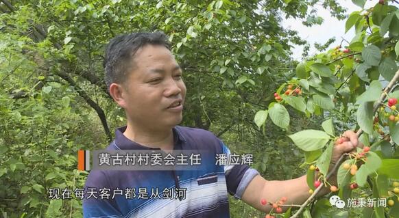 今年果子(櫻桃)長得很好,它(櫻桃)從來不用打藥�,F(xiàn)在每天客戶都是從劍河,鎮(zhèn)遠(yuǎn),凱里天天都有來這里收(櫻桃),每斤(價格)都達(dá)到十塊錢以上,現(xiàn)在我們黃古烏亞這個(櫻桃)就是一個特色產(chǎn)業(yè)。