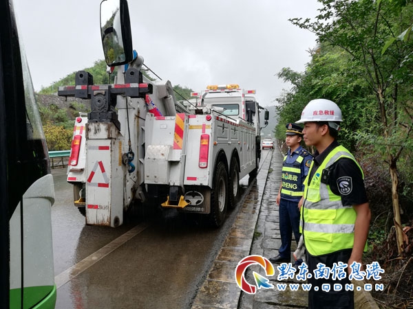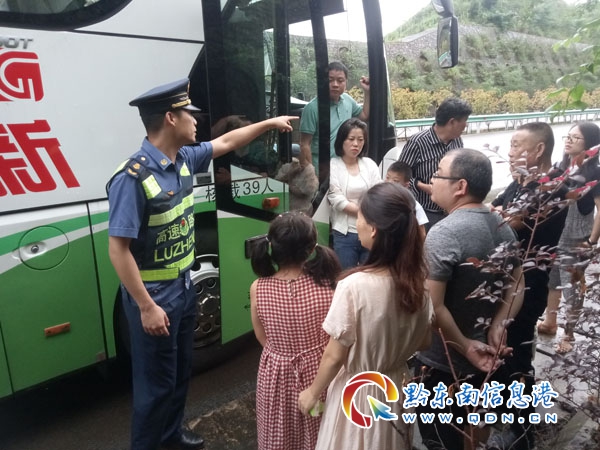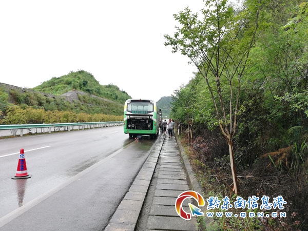 到達現場后,通過了解,該客車是一輛外地旅游大巴,車上載有14名乘客,都是外地游客,其中還有幾名老人和小孩,從鎮遠前往千戶苗寨苗寨途徑此地,由于車輛軸承出現故障,導致無法繼續行駛,駕駛員已通知客運公司派車轉運,但仍需大約一個半小時才能到達。