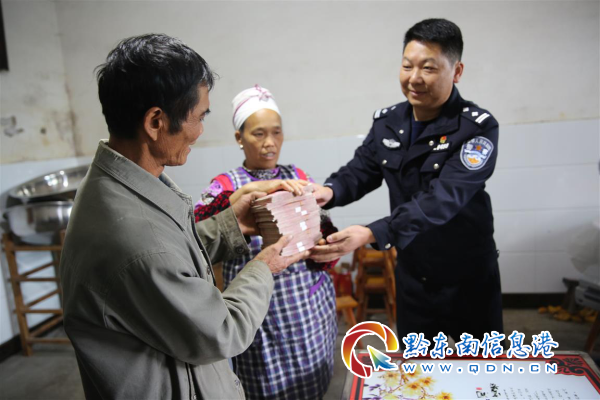 本網(wǎng)訊 2019年9月27日,施秉縣公安局接到報(bào)警,楊柳塘鎮(zhèn)屯上村吳某普家中12.3萬元現(xiàn)金及6件銀飾被盜。因被盜金額較大,受害人又是于2014年脫貧的貧困戶,案件在當(dāng)?shù)卦斐奢^大的負(fù)面影響。縣人民政府副縣長、公安局黨委書記、局長董國強(qiáng)聽取匯報(bào)后高度重視,立即安排部署,在新中國成立70周年大慶安保警力緊張的情況下,抽調(diào)精干警力成立“9.27”專案組開展偵查,同時(shí),董國強(qiáng)副縣長對(duì)專案組提出要求:該案務(wù)必偵破,決不能讓貧困戶因被盜而返貧。2019年10月3日,專案組民警連續(xù)作戰(zhàn)五天五夜,輾轉(zhuǎn)多縣,在鎮(zhèn)遠(yuǎn)縣成功將犯罪嫌疑人龍某某抓獲,追回被盜現(xiàn)金12.3萬元,“9.27”特大盜竊案成功告破。