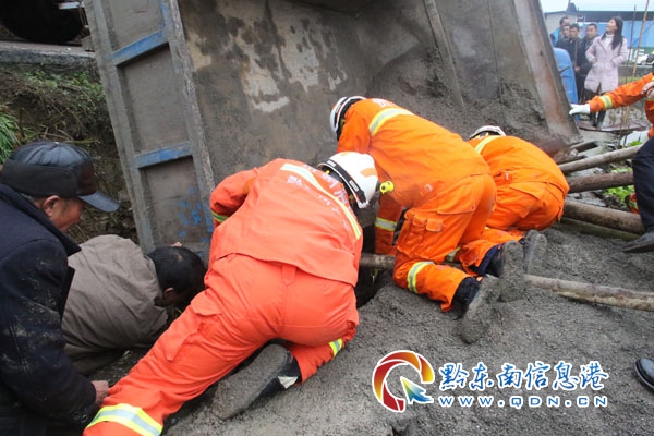 7時53分,消防隊員到達事故現場,現場對交警已對現場進行了警戒,消防隊員立即對現場進行偵查。經偵查發現,一輛拉沙車側翻在路邊的渠溝里,拉沙車下面有一名人員被困。由于天氣寒冷,被困人員在水中無法脫身,指揮員根據現場情況立即組織人員對拉沙車上的沙子進行清理。隨后利用搶險救援車吊臂對拉沙車進行起吊,同時組織周圍群眾找來木棍對拉沙車進行固定,避免在救援中使被困人員受到二次傷害。經過半個小時的緊張救援,被困人員被成功救出,移交給現場等候的醫護人員送往醫院進行治療。