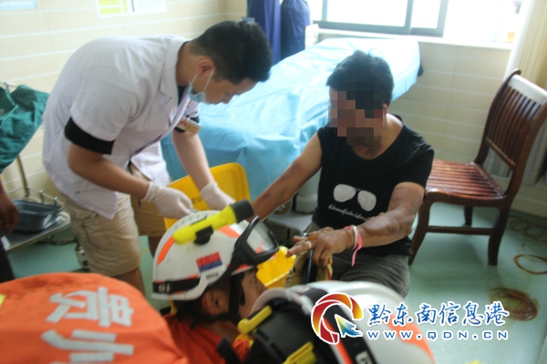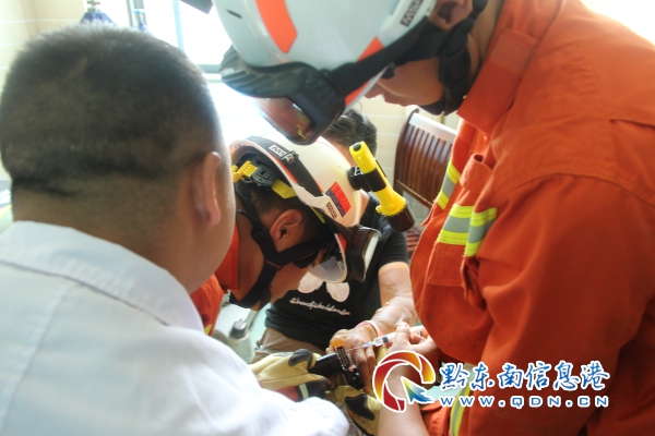 消防人員到達現場后,經了解,老人因意外導致兩只手臂及臉部被燒傷起泡,正在醫院包扎室內進行包扎,但手上的戒指影響了醫生治療,隨即求助消防員。了解情況后,消防隊員立即使用指環切割機對老人手上戒指進行切割,在切割過程中為避免造成手指二次燙傷,現場醫生對切割處持續進行降溫。5分鐘后,戒指被消防隊員成功取下。隨后現場醫生立即對老人進行治療。