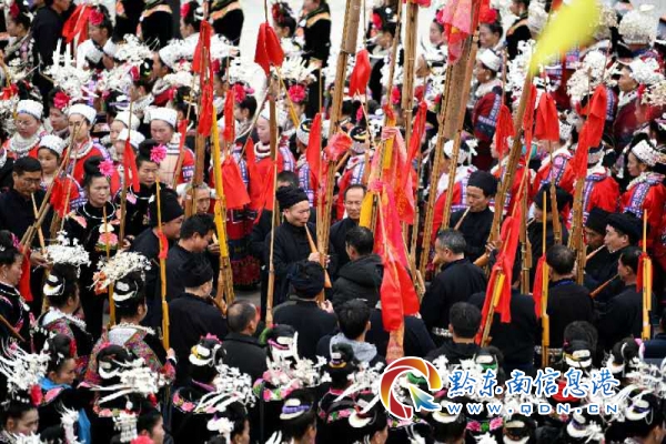 當(dāng)日是己亥年正月初四,在譽(yù)為“大銀角苗聚居地,姊妹湖上的明珠”的貴州省黔東南苗族侗族自治州臺(tái)江縣南瓦村,來(lái)自凱里市和臺(tái)江縣的106個(gè)苗寨近萬(wàn)苗族群眾受邀齊聚,身著盛裝,伴隨著蘆笙節(jié)奏,跳起傳統(tǒng)的蘆笙舞,舉行一年一度新春蘆笙會(huì)。共同辭舊迎新,感恩過(guò)往,祈福新春,歡慶國(guó)泰民安的新春佳節(jié)。(歐陽(yáng)光林)