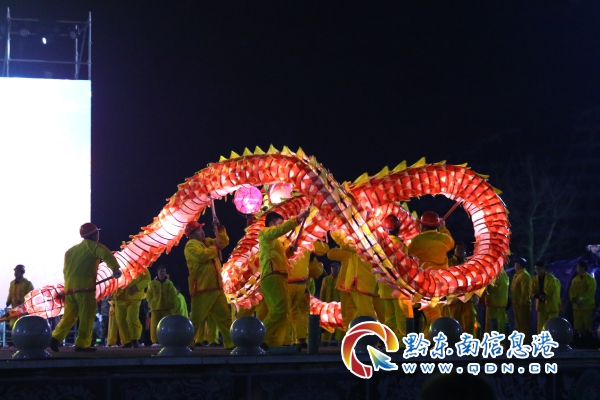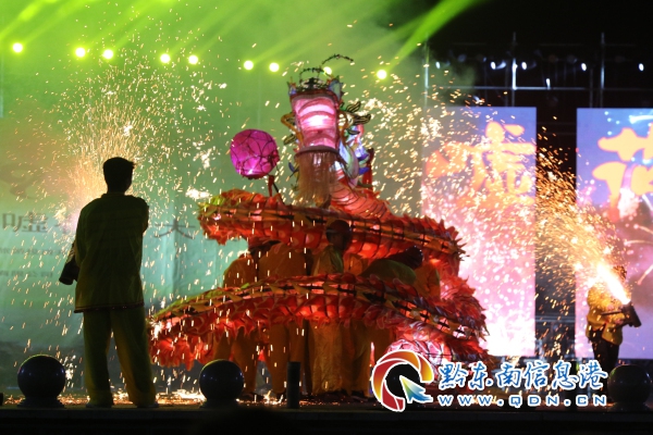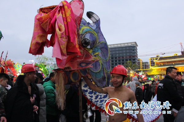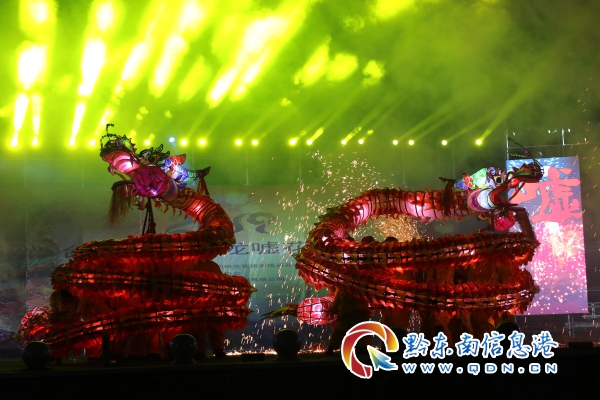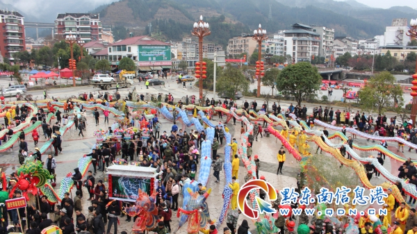 參加本次“百龍競(jìng)技爭(zhēng)霸”和“花筒王”比賽的隊(duì)伍共29條,參與人數(shù)達(dá)5000余人。在百龍游街結(jié)束后,全縣男女老幼全家出動(dòng),為來(lái)到比賽現(xiàn)場(chǎng)一睹各路龍燈的風(fēng)采,姊妹廣場(chǎng)上人頭攢動(dòng),好不熱鬧。在比賽在比賽過(guò)程中,各街道各村寨將花筒與舞龍融合,雙龍齊舞、盤(pán)龍等多種形式“舞龍噓花”展現(xiàn)得淋漓盡致,造型別致、花樣百出的花燈隊(duì)伍更是成為比賽場(chǎng)上一道靚麗的風(fēng)景線。