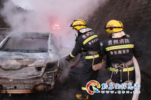 臺江縣消防大隊接到報警后出動2輛消防車、12名指戰員趕赴現場。還未到場自燃小車冒出的黑煙就已經是清晰可見了。到達現場后,發現高速路邊的一輛白色小轎車已被大火吞噬,現場濃煙滾滾。經過消防救援人員10多分鐘的撲救,火被撲滅,雖然小車已徹底損毀了,但萬幸沒有造成人員傷亡。