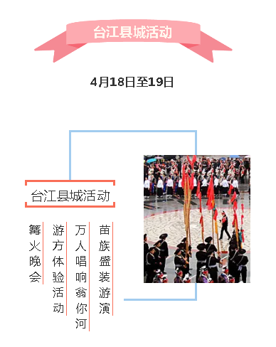 圍繞姊妹節(jié)活動(dòng),依托臺(tái)江自然風(fēng)光及民族風(fēng)情,讓游客體驗(yàn)感受苗家青年男女相識(shí)、相知、相處、相戀全過程,讓參與者融入其中、樂在其中。