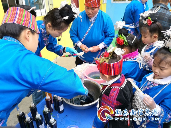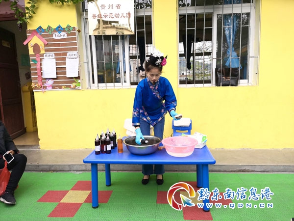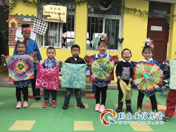 本網訊 經過精心籌劃,4月12日上午臺江縣老屯鄉中心幼兒園組織了一場生動有趣、別具一格的親子扎染活動。全園全體教師、幼兒及幼兒家長50余人參加了此次活動。