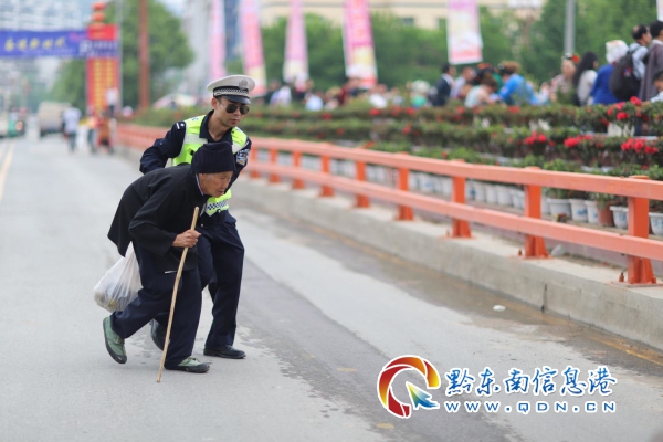 為立即恢復(fù)交通秩序及避免不必要的交通事故發(fā)生,執(zhí)勤交警立即制止其行為并指揮駕駛員將車輛停放在臨時(shí)停車線內(nèi)。隨后,交警一只手?jǐn)v扶著老人通過大橋,一只手還不忘指揮交通。看到這一幕,旁邊的游客們紛紛為執(zhí)勤交警豎起了大拇指。