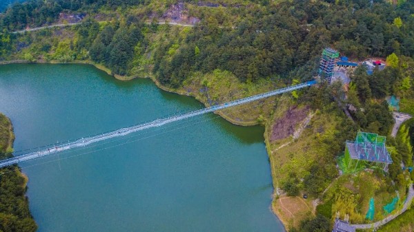 玻璃棧橋長度320米,寬2.8米,欄桿高1.2米,垂直高度49米,走在娜悠玻璃棧橋上,仿佛漫步空中,讓你感受到凌空百米的神奇之境,可賞周圍山高水清、特色小鎮美景盡收眼底。