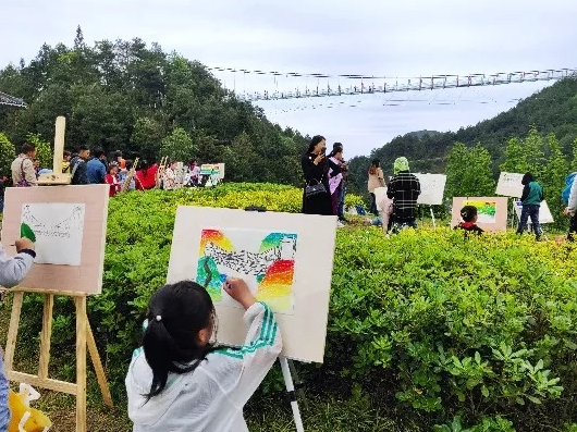 春暖花開,風和日麗,近日小鎮的新開項目玻璃棧橋迎來了一批超級有才的客人,他們就是來自丹寨妙筆堂美術工坊的小學員們,小朋友們運用課堂上學習的繪畫技巧來描繪玻璃棧橋的美景。小朋友們的家長們也陪他們一同來到小鎮,在參與戶外寫生比賽的同時,也能來一場家庭親子行。