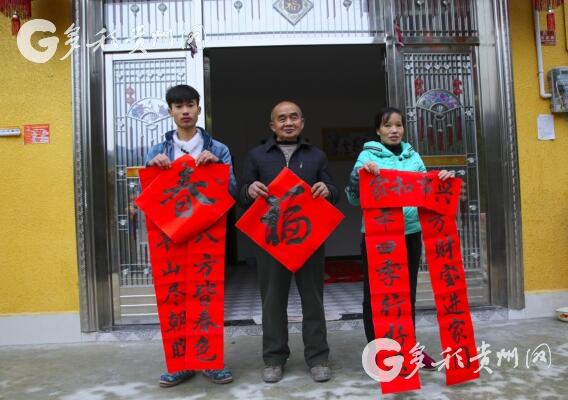 在送春聯的同時,攝影老師們組織了小分隊,除了現場為群眾“歡歡喜喜迎新年”拍攝外,還深入部分群眾家中,開展拍攝全家福活動。圭研村五組脫貧戶楊漢洪抑制不住內心的喜悅,給遠在廣東打工的兒子楊世瀾和在縣城務工的妻子打電話說:“今天縣里到我們村為我們寫春聯和照全家福,你們都不在家,我一個人也要照,照張一個人的全家福!哈哈哈!”