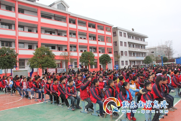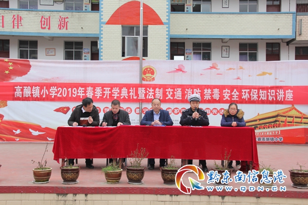 本網訊 3月5日,天柱縣高釀鎮中心小學舉行2019年度新春開學典禮活動,全校918名師生參與活動�?h交警大隊民警借此良好契機,深入活動現場為全校師生開展交通安全知識培訓。