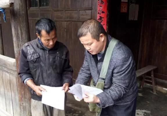 楊佐隆到貧困戶家中走訪,核查收入情況,宣傳扶貧政策
