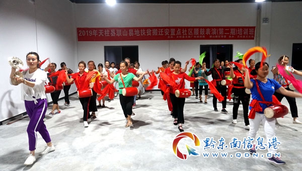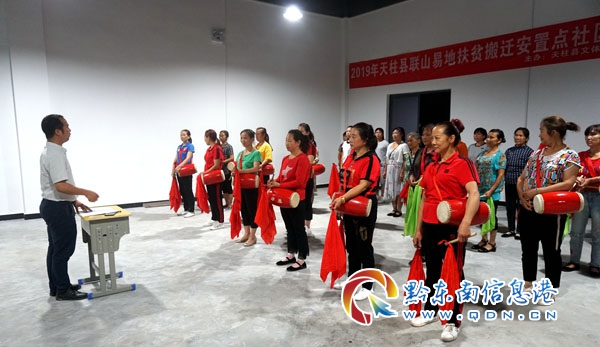 本網訊 7月9日,為期十天的腰鼓培訓班如期開班,受到廣大群眾歡迎,來自聯山新區惠民社區、幸福社區的易地扶貧搬遷群眾共計50余人參加培訓。