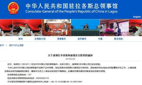 圖片來源:中國駐拉各斯總領(lǐng)館網(wǎng)站截圖