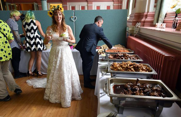 頗具環保意識的蒂爾斯頓夫婦決定在婚禮期間盡可能的回收利用,避免浪費。于是,他們向“真正的垃圾食品項目”(The Real Junk Food Project)預定了這場特別的婚宴,該項目還經營著一家出售廢棄食物的咖啡館。