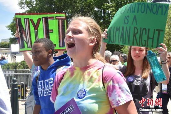 資料圖:當地時間2019年5月21日,數百名抗議者聚集在位于華盛頓的美國聯邦最高法院門前,抗議近期美國多個州通過的禁止墮胎法令。中新社記者 沙晗汀 攝